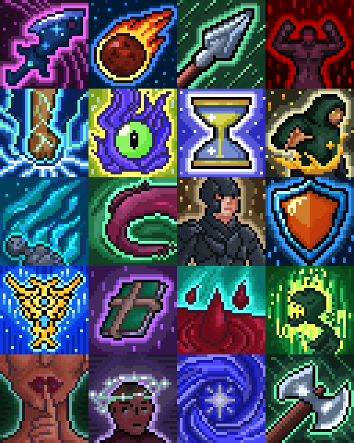Today I’m releasing a new set of 20 epic spell and ability icons, hand-drawn in Aseprite. This pack became a small personal challenge: I wanted to push my pixel art style further, experiment with stronger highlights, deeper shadows, and more expressive fantasy effects.